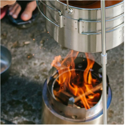 Designed with a double-wall, the Solo Stove Campfire is a natural convection inverted down gas gasifier stove.