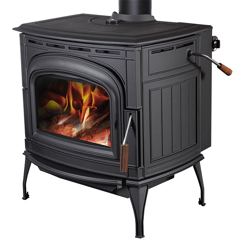 Our craftsmen used the timeless medium of cast iron to create a beautiful and elegant piece of furniture with detailed relief and curves. The Ashford is available in: Metallic Black or Cast Gray paint finishes and Chestnut Brown Porcelain Enamel finish. Burled walnut is carved for the door and bypass handles. This creates a luxurious feel every time you use your stove. The adjustable, dual action door latch has a positive lock feel and is easy to operate. The Ashford 30 includes Standard Ash Drawer which is mounted on Easy Glide runners with a removable Ash Pan and Lid